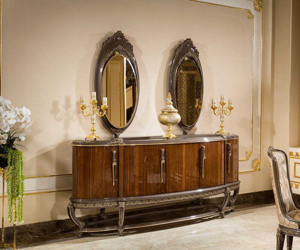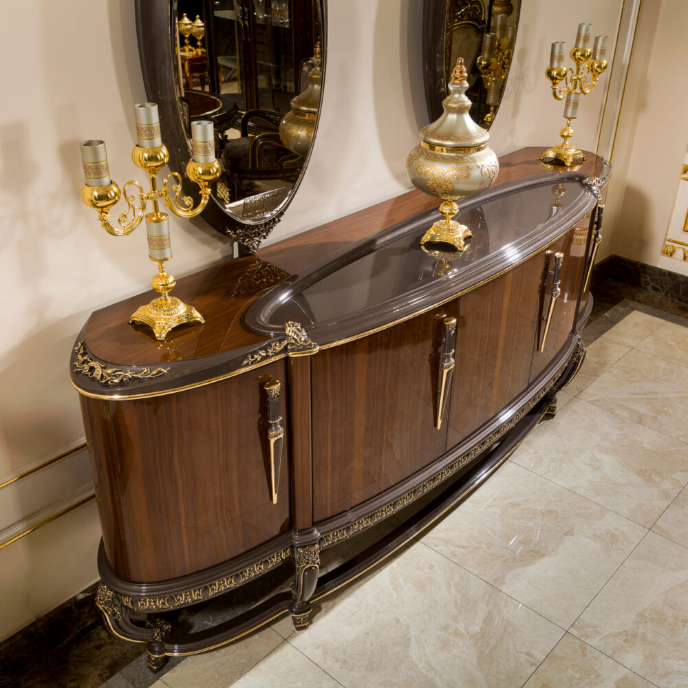 The Elegance Classic Console is a sophisticated piece that combines timeless design with meticulous craftsmanship. With custom production methods, this console is proudly Made in Turkey, highlighting the expertise of Turkish furniture makers. As a Turkish custom furniture producer, we focus on creating elegant and functional pieces that stand out in any setting. Our commitment as a Turkish custom furniture manufacturer ensures the use of the finest materials and exceptional craftsmanship. As a custom Turkish furniture manufacturer, we offer tailored designs that elevate your home with a perfect blend of luxury and style, making the Elegance Classic Console an exquisite choice for refined spaces.