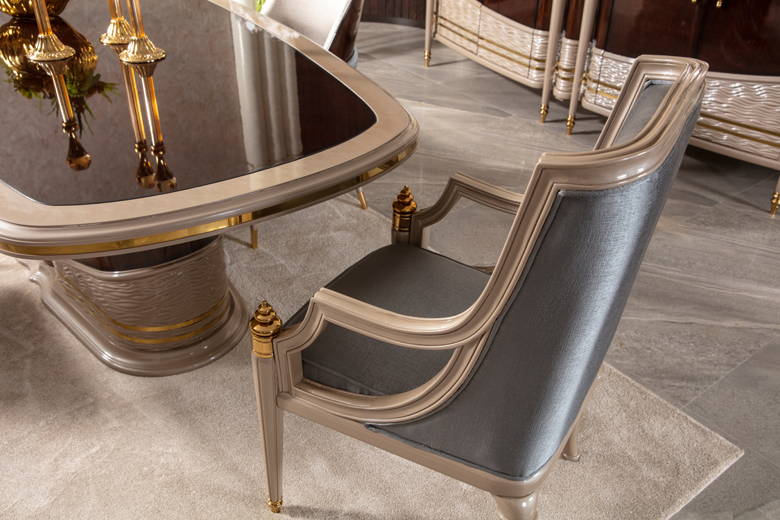 The Elissa Classic Chair combines timeless elegance with impeccable craftsmanship. Made in Turkey using custom production methods, this chair is the perfect example of our dedication as a Turkish custom furniture producer. As a Turkish custom furniture manufacturer, we specialize in designing and creating pieces that are tailored to meet the unique needs and tastes of our clients. The Elissa Classic Chair brings together classic design elements with modern comfort, ensuring that it serves as a luxurious and functional addition to any space. As a custom Turkish furniture manufacturer, we take pride in offering high-quality, bespoke furniture solutions that transform your home into a sophisticated and stylish haven.