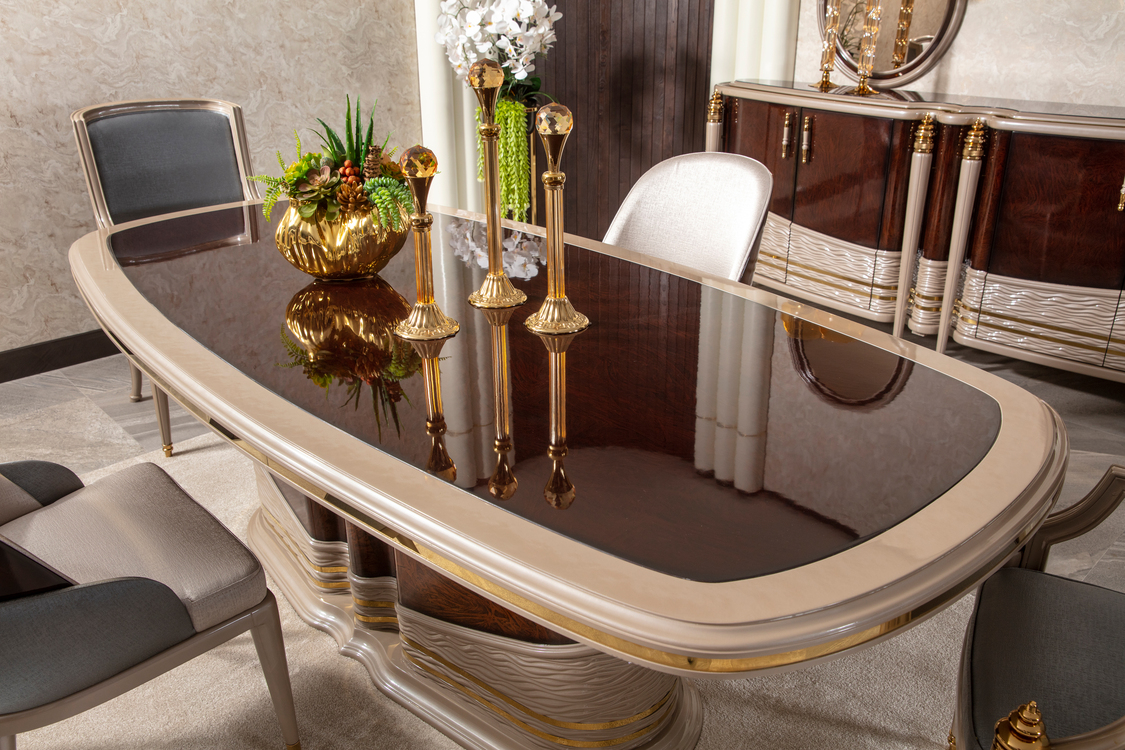 The Elissa Classic Table is a stunning piece of craftsmanship, designed to bring timeless elegance to your home. As part of our custom production line, this table is Made in Turkey by a skilled Turkish custom furniture producer. With meticulous attention to detail, the Elissa Classic Table is carefully crafted by a leading Turkish custom furniture manufacturer, ensuring durability and beauty. Each table is a reflection of our commitment to quality and luxury, offering a perfect balance of style and functionality for any dining or living space. As a custom Turkish furniture manufacturer, we offer personalized options to make this table uniquely yours, blending classic design with modern sensibilities.