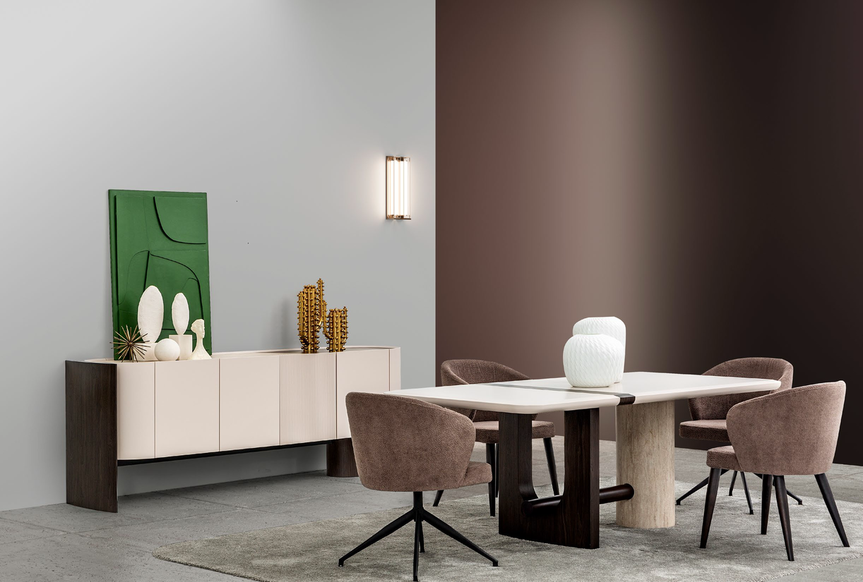 As a renowned Turkish custom furniture producer, we specialize in creating custom Turkish furniture tailored to your exact specifications. The Fin Dining Room, produced by a Turkish custom furniture manufacturer, showcases expert craftsmanship and timeless design, providing a sophisticated atmosphere for dining and entertaining in your home.