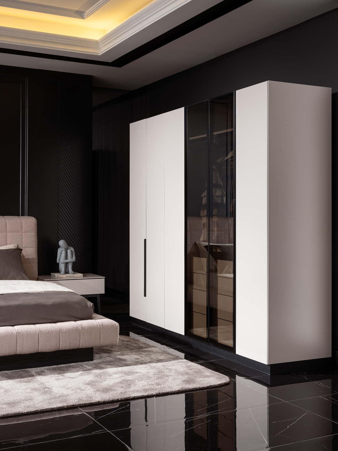 As a leading Turkish custom furniture producer, we specialize in creating bespoke furniture tailored to individual needs. The Foranza Wardrobe, designed by a Turkish custom furniture manufacturer, provides ample storage space while maintaining a sleek and elegant design, making it a perfect addition to any contemporary bedroom.