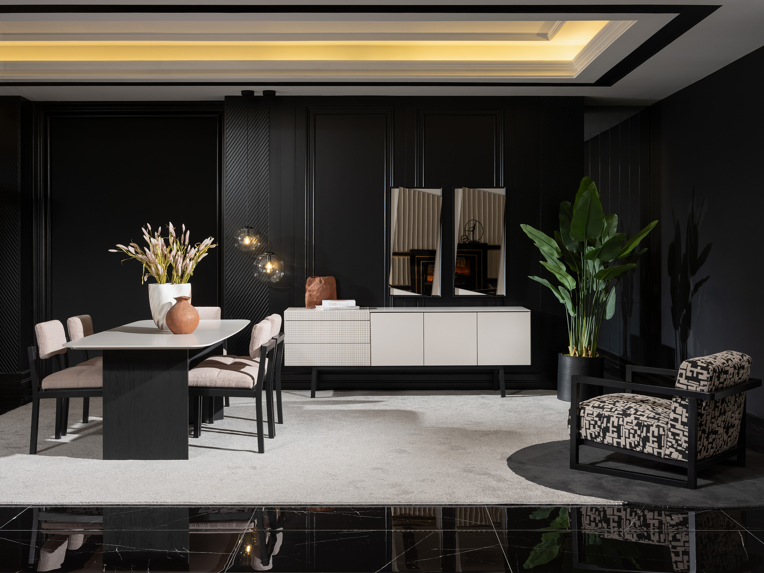As a leading Turkish custom furniture producer, we specialize in creating bespoke furniture that meets the unique needs and preferences of our clients. The Forenza Dining Room, designed by a Turkish custom furniture manufacturer, combines modern sophistication with exceptional functionality, making it the ideal choice for a stylish and welcoming dining area.