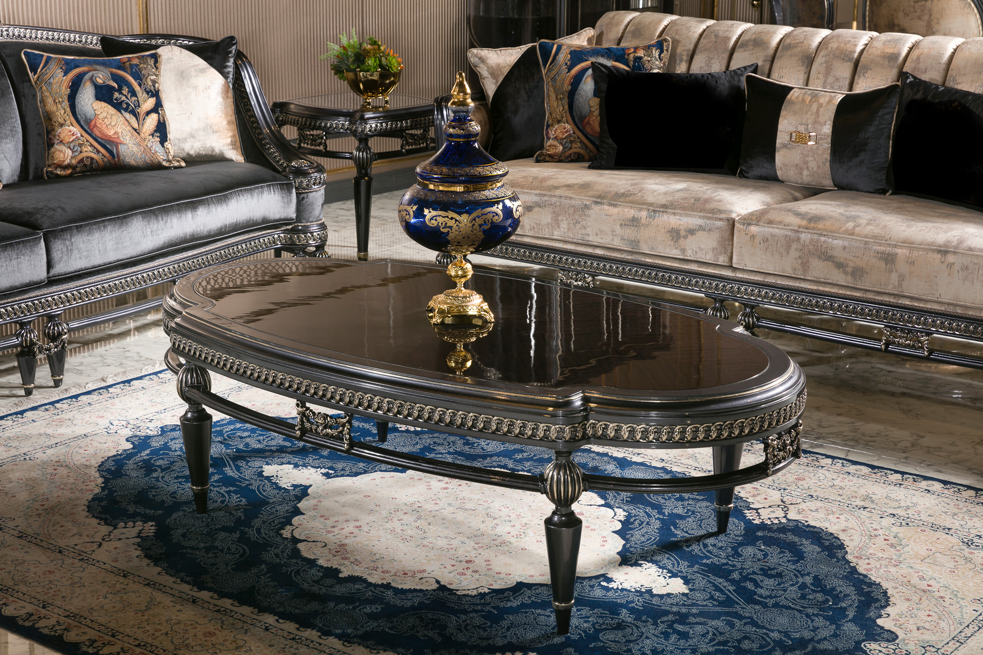 Designed by a custom Turkish furniture manufacturer, this center table enhances any living space with its rich aesthetics and superior functionality. Whether placed in a grand living room or a formal sitting area, the Gloria Classic Center Table adds a touch of elegance and exclusivity to your home.