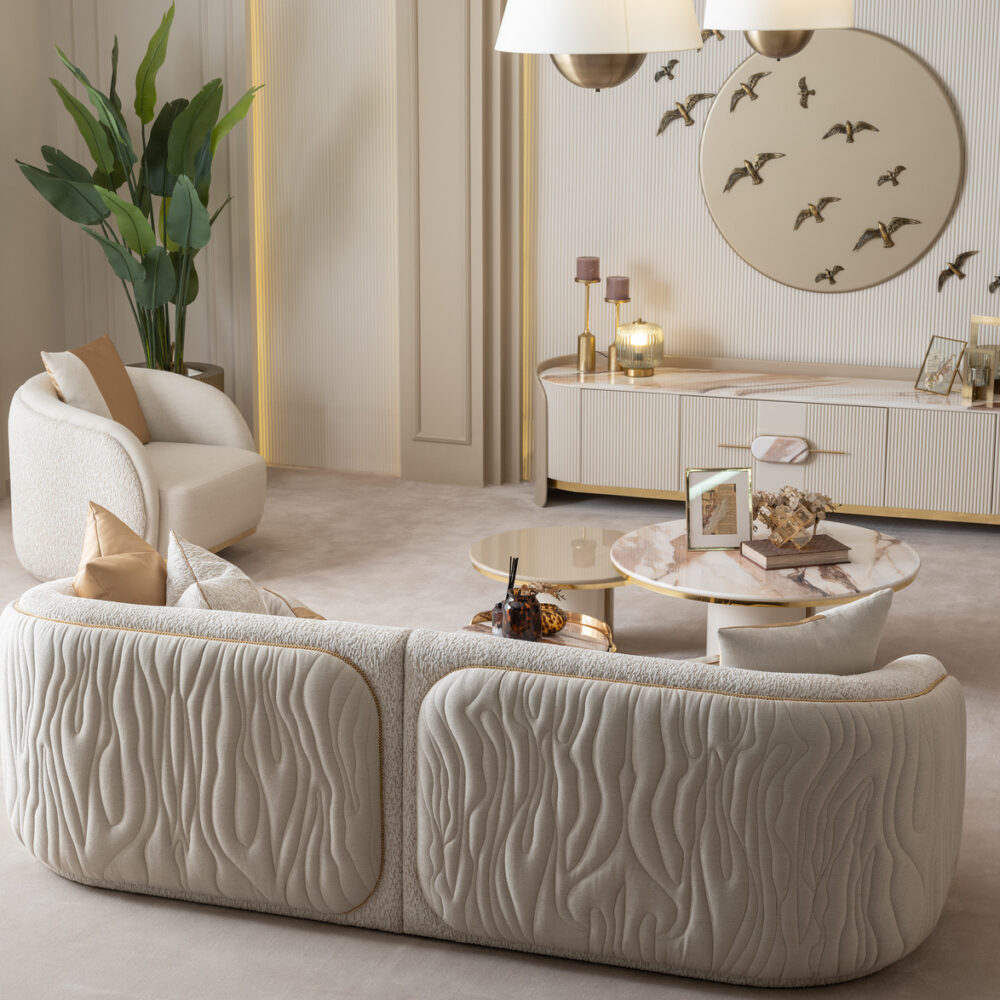 The Hilton Living Room collection is a stunning example of custom production, combining luxury, style, and comfort. Made in Turkey, each piece in this collection is crafted with exceptional attention to detail, offering both aesthetic appeal and lasting durability for your living space.