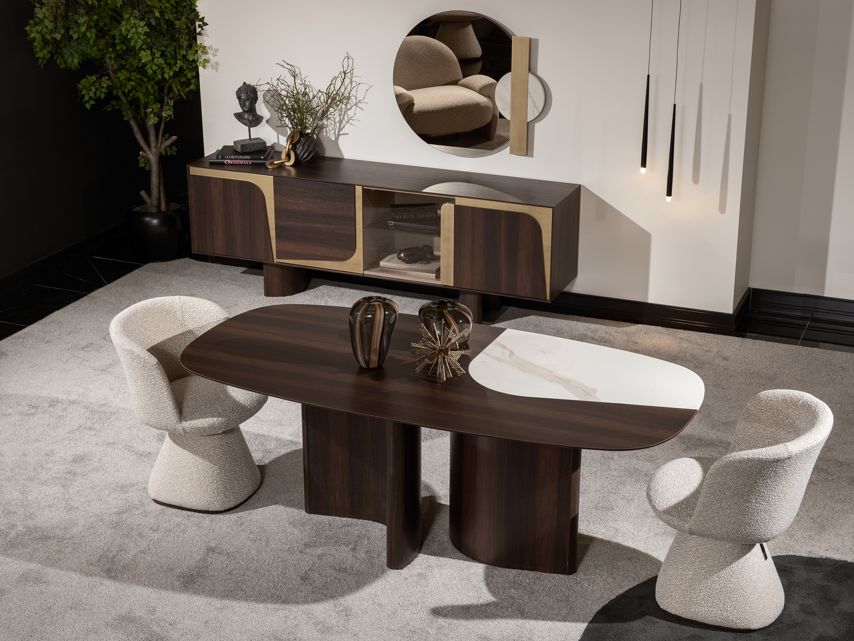 As a leading Turkish custom furniture producer, we specialize in creating bespoke furniture tailored to the unique preferences and needs of our clients. The Le Mans Dining Room, designed by a Turkish custom furniture manufacturer, combines modern elegance with practical solutions, making it the ideal choice for a stylish and welcoming dining area.