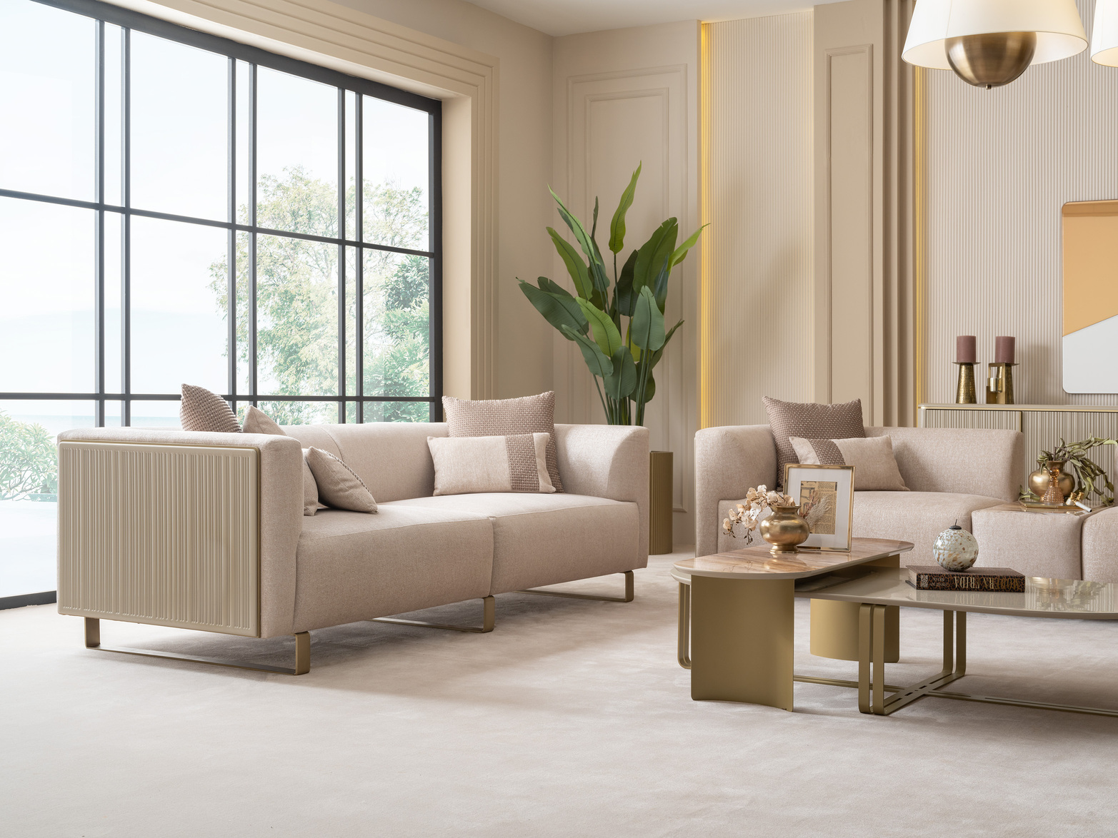The Massimo Sofa is a perfect example of custom production, combining luxurious comfort with modern design. Made in Turkey, this sofa is crafted with the finest materials and exceptional craftsmanship, ensuring both durability and style for your living space.