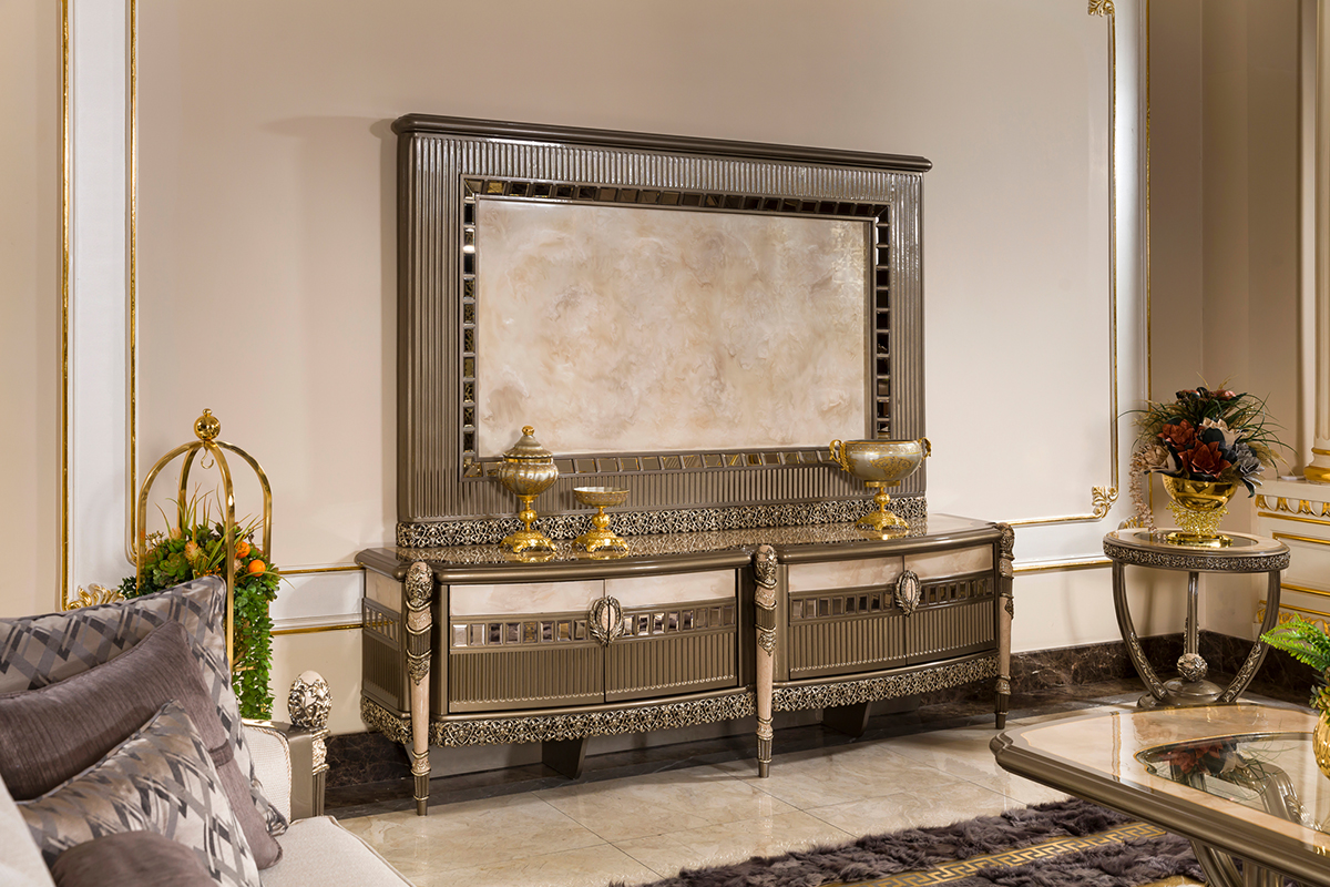The Perla Classic TV Unit brings an exquisite blend of traditional elegance and modern functionality to your living space. Crafted with custom production techniques in Turkey, this TV unit showcases the unmatched quality and craftsmanship of a Turkish custom furniture producer. As a custom Turkish furniture manufacturer, we take pride in creating bespoke designs that reflect your personal style and needs. Made in Turkey, the Perla Classic TV Unit is a perfect example of luxury and practicality, offering both a stunning focal point and practical storage solutions for your entertainment area. Experience the beauty and durability of a truly handcrafted piece, designed by a leading Turkish custom furniture manufacturer.