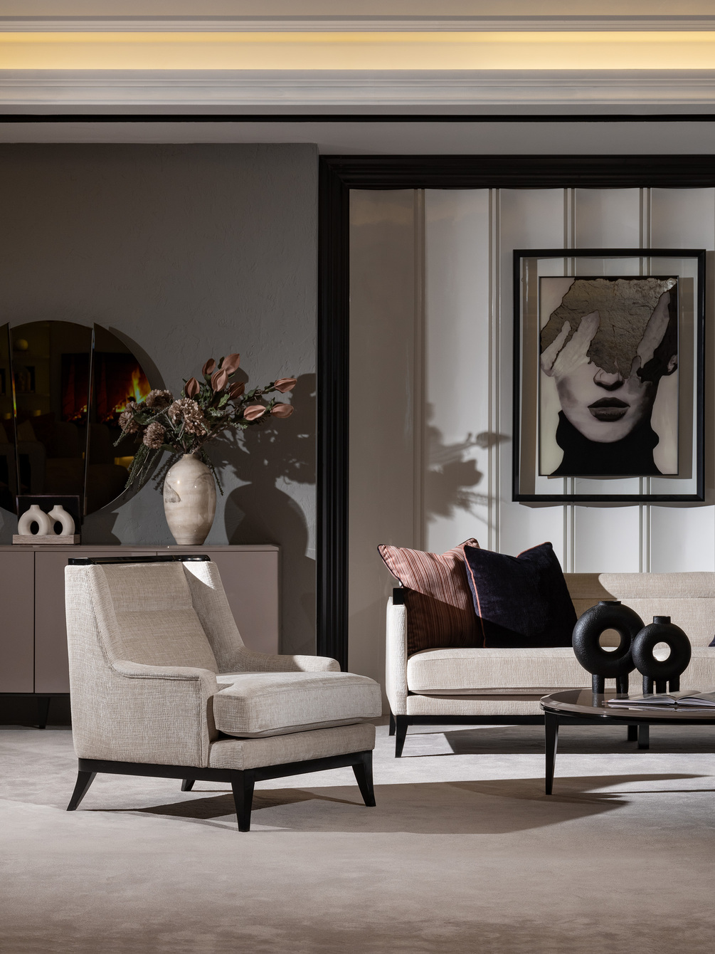 As a leading Turkish custom furniture producer, we create bespoke furniture that caters to individual styles and needs. The Riyad Armchair, designed by a Turkish custom furniture manufacturer, combines modern design with ergonomic comfort, making it a perfect addition to any luxurious interior.