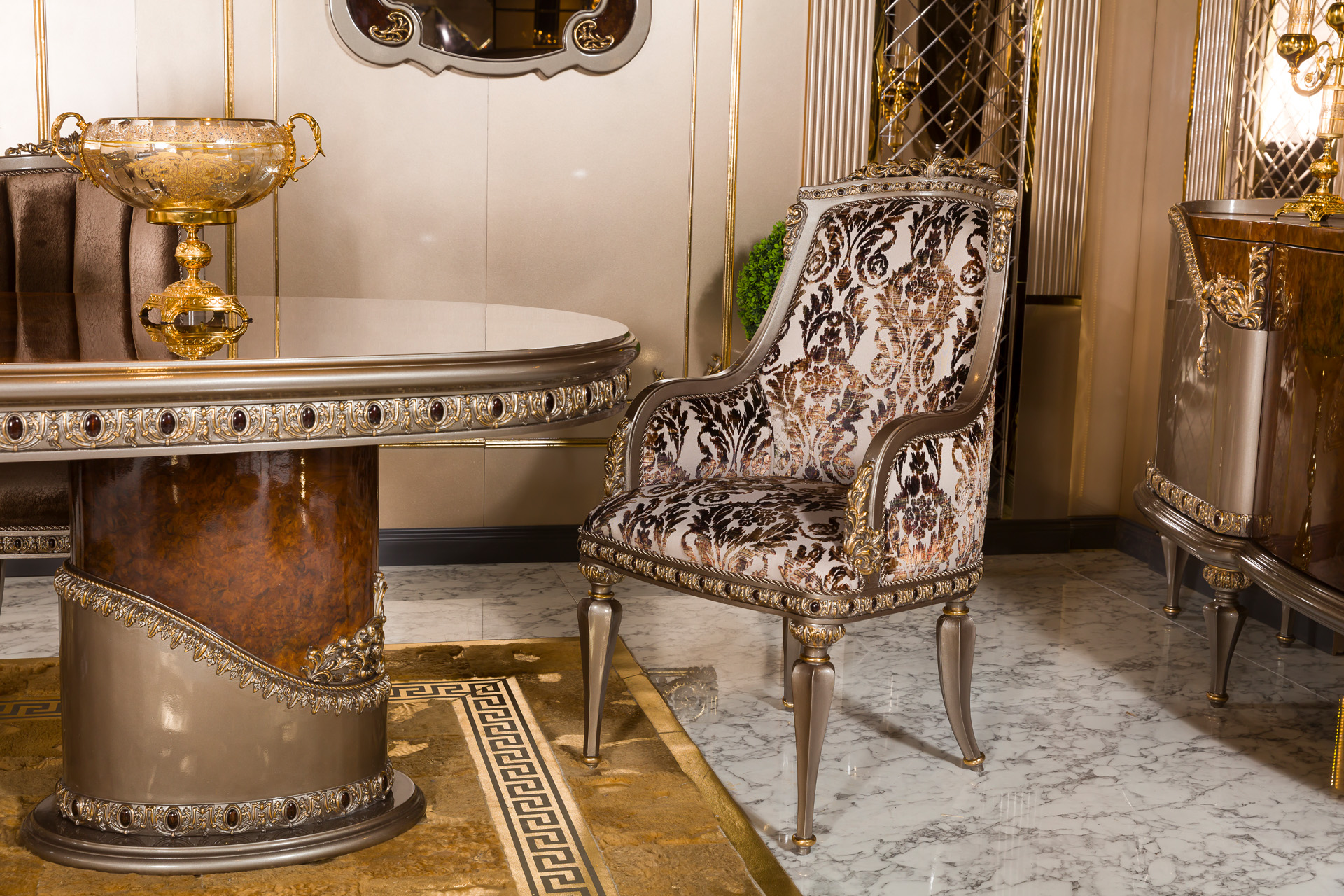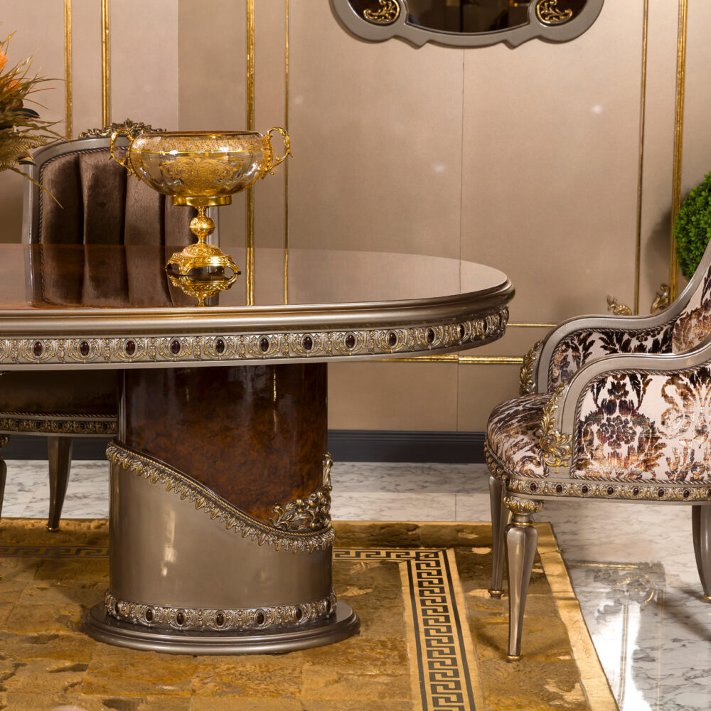 The Rolex Classic Chair is a luxurious piece crafted by a custom Turkish furniture manufacturer, ensuring top-tier quality and sophisticated design. Made in Turkey, this chair embodies elegance and comfort, making it an ideal addition to both classic dining rooms and refined living spaces.