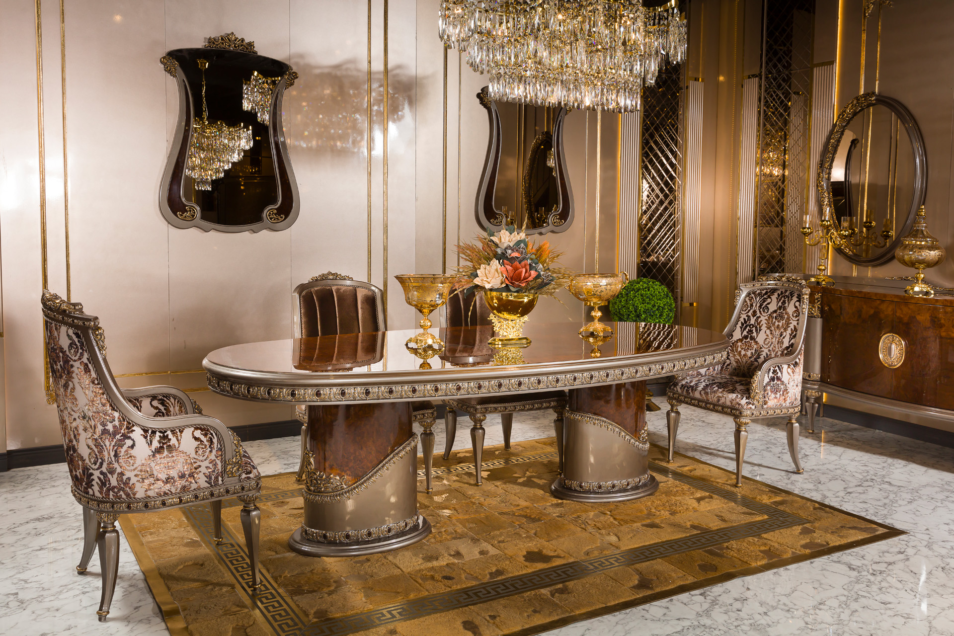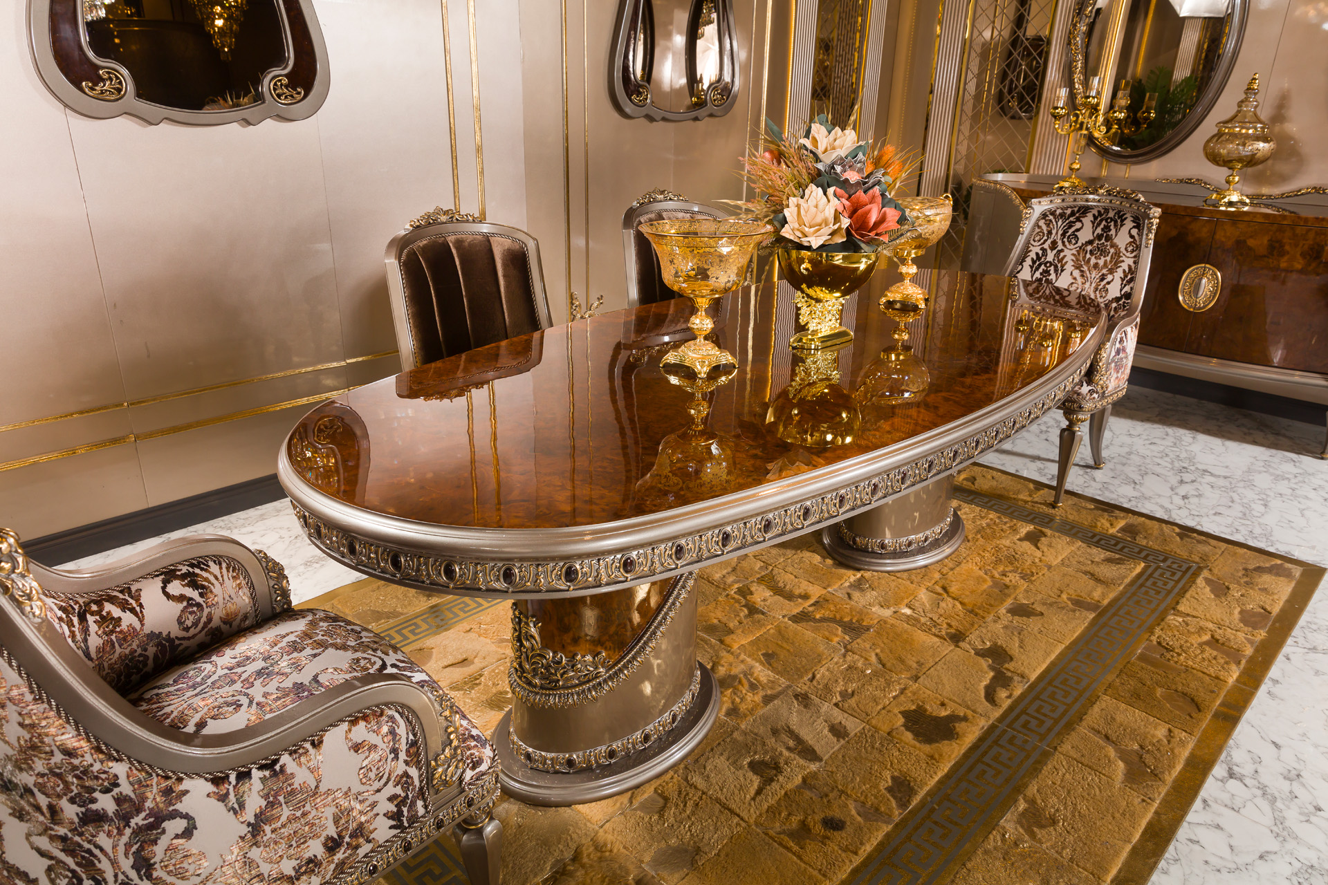 Through custom production, this table showcases the expertise of a Turkish custom furniture producer, featuring luxurious wood finishes, ornate carvings, and a sturdy yet refined structure. Whether used for formal dining or as a statement piece in your home, the Rolex Classic Table blends tradition with sophistication, making it a perfect centerpiece for classic interiors.